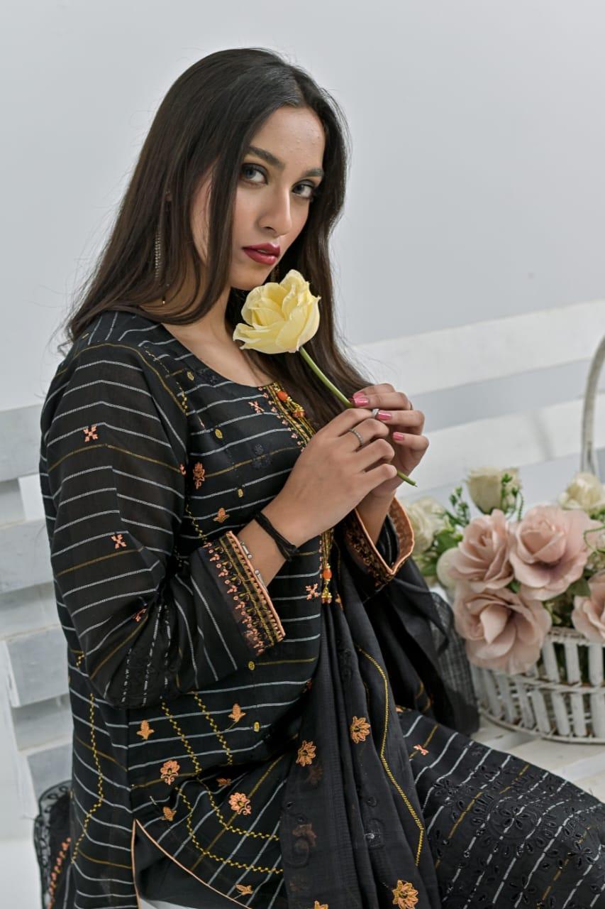Featuring premium cotton fabric with intricate embroidery, perfect for a sophisticated and elegant look. Paired with a luxurious Nano Kara embroidered dupatta, this ensemble combines style and comfort for any occasion. Ideal for those who appreciate timeless design with a touch of modern flair.
